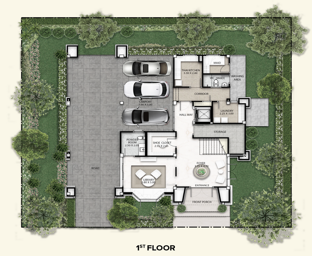 Spacious, sophisticated charm. A three-story home, Zafira’s double-volume foyer leads up towards an airy second floor distinguished by a large outdoor terrace and a breezy flow between the indoor living space and outdoor nature. The design is accented by a delightful tea corner in the Great Room and the enormous Master Bathroom with a bathtub that swells out above the backyard.